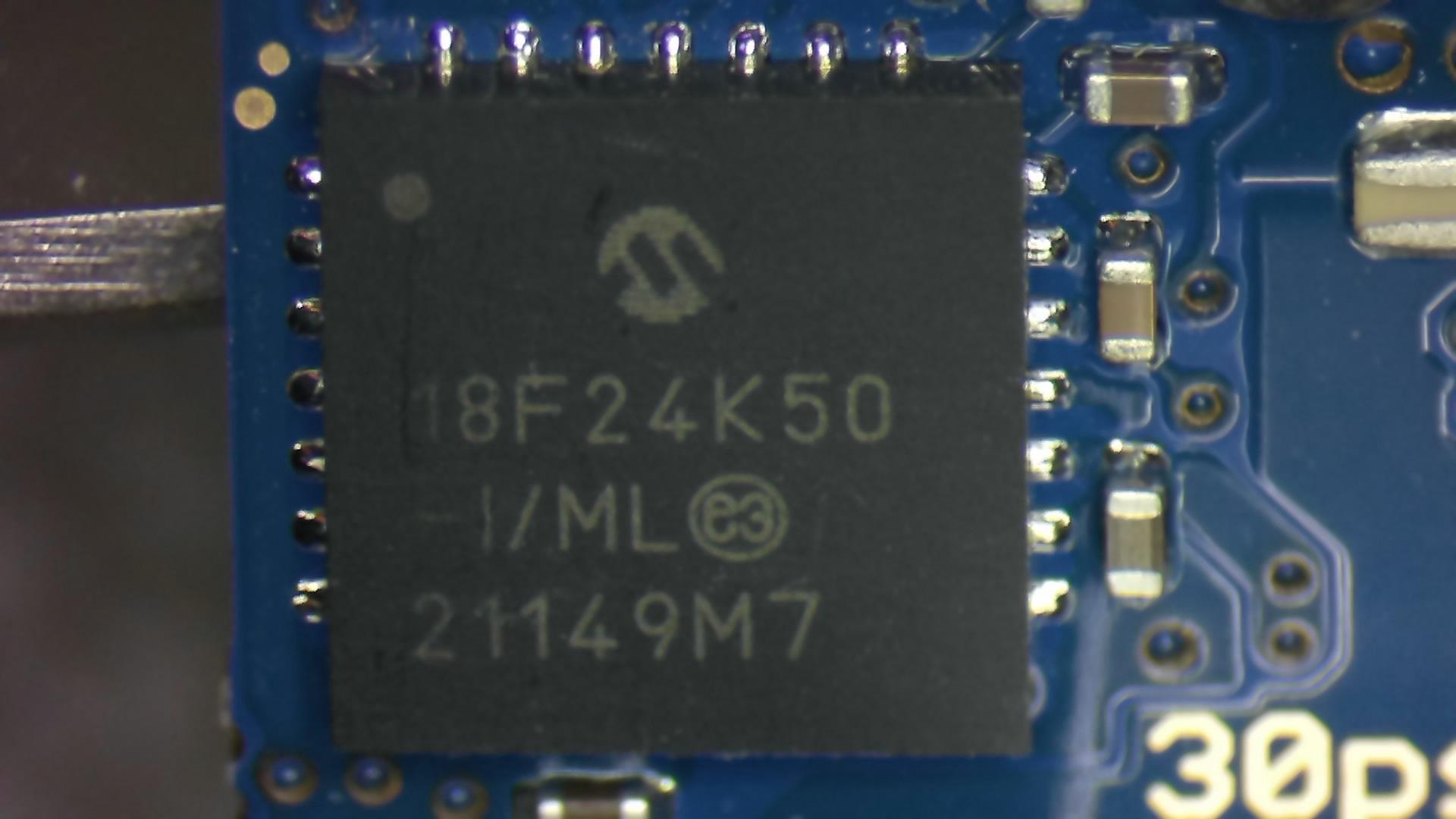 Stereo microscope close-up of the IC 18F24K50