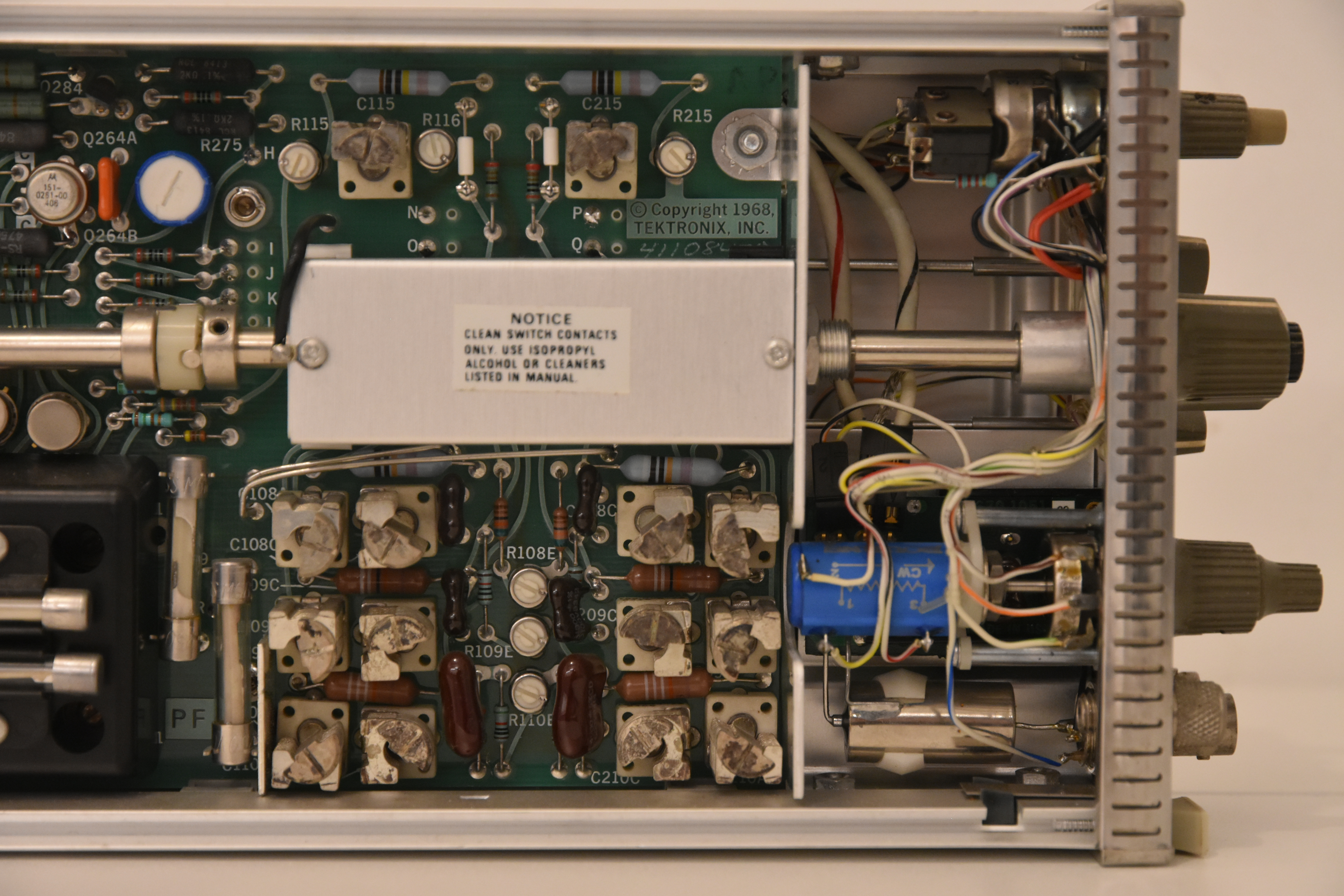 Tektronix 7A22 Differential Amplifier, Left hand side Printed Circuit Board (detail image towards front panel)